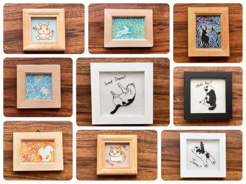 こんにちは、とむどんです。今回は軽ーく宣伝です。最近、切り絵作家さん界隈で、セリアのミニ額に切り絵を入れて販売するのがプチブームらしいので、私も乗っかってみることにしましたよ 黒猫さんと三毛猫さんのミニ切り絵♪本当は茶トラにする予定だったの…